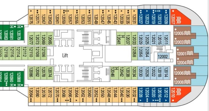 Kajuty pre osoby so zníženou mobilitou sú vždy priestrannejšie a dobre dostupné, bývajú umiestnené blízko výťahov - viď plánik lode MSC, kajuty s označením H. Často sa tiež ponúkajú vo viacerých typoch, od cenovo najvýhodnejších kajút vnútorných až po luxusné suity.