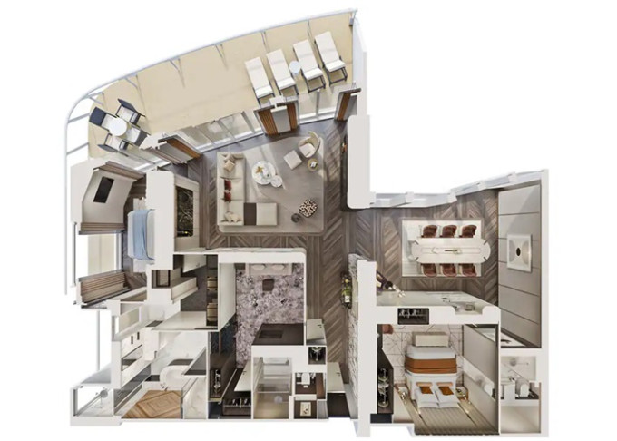 | H2 - The Haven Deluxe Owner's Suite 197 m² / balkón 45 m². 18. paluba vpredu. Max 6 osôb. Výhody The Haven. | 17 562 € 8 781 € za osobu | ||