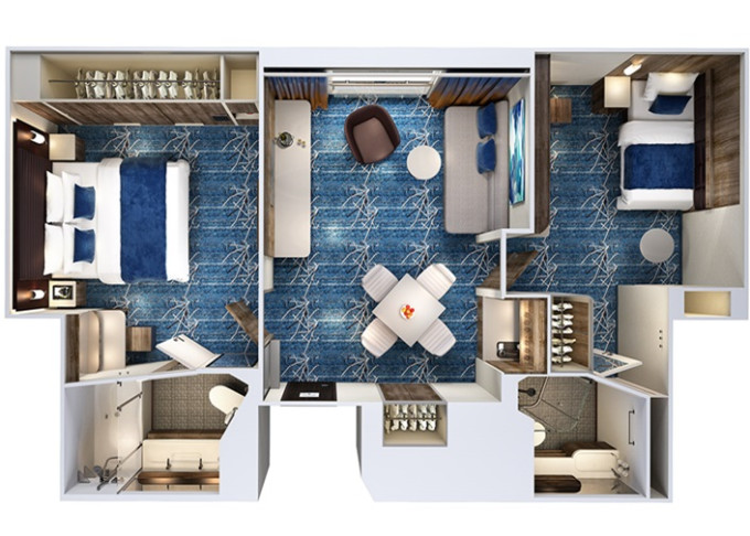 | H5 - The Haven Family Villa - 2 spálne 5 m² / balkón 11 m². 17. paluba - vpredu. Max 6 osôb. Výhody The Haven. | 9 098 € 4 549 € za osobu | ||