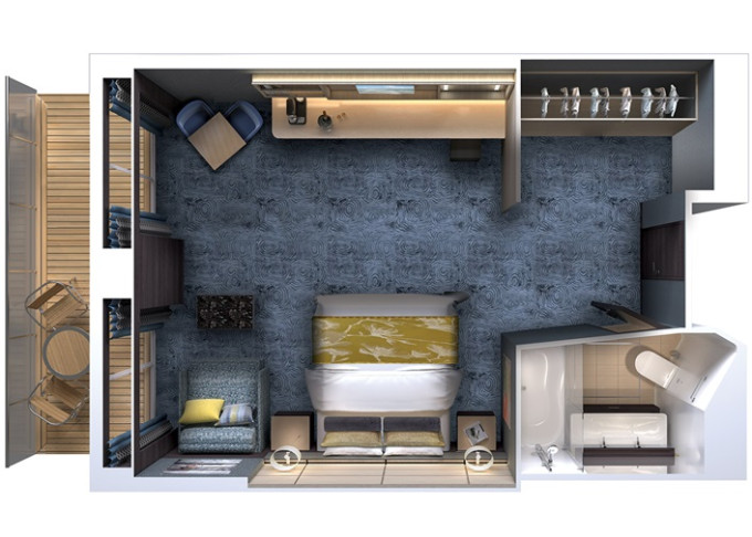 | HJ - The Haven Suite s balkónom 35 m² / balkón 5 m². 14. paluba - stred. Max 4 osoby. Výhody The Haven. | 4 990 € 2 495 € za osobu | ||