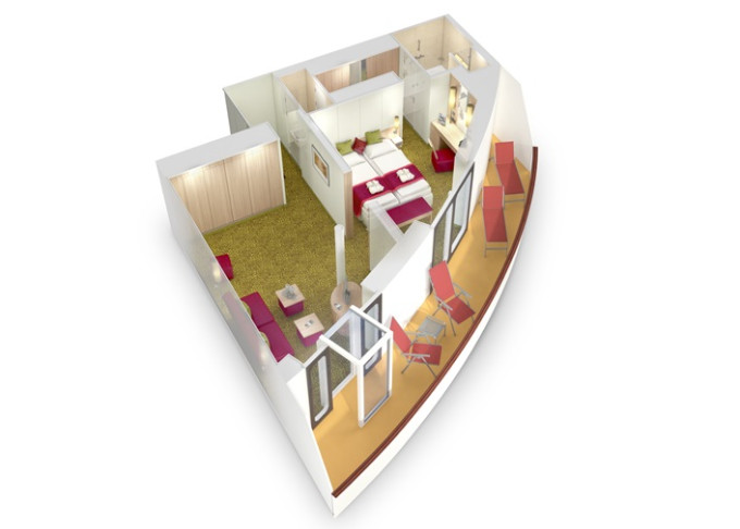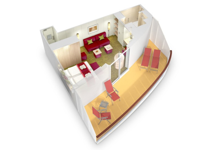 SD - Junior Suite PREMIUM od 34 m² / balkón 10 m². 7, 8, 9. paluba. Max 4 osoby. Cenový model Premium + výhody Junior Suite. 3 920 € 1 960 € za osobu